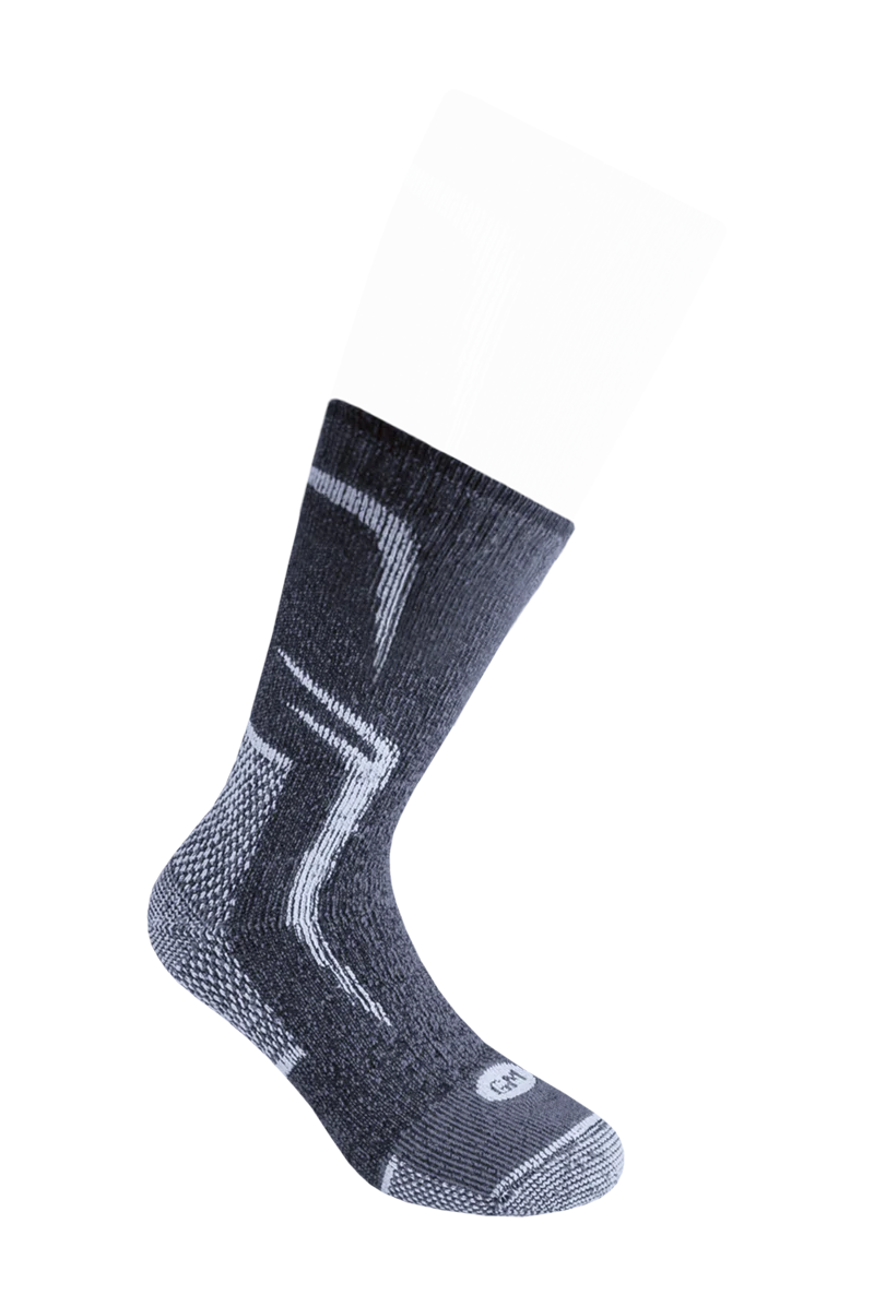 I calzini termici per eccellenza, super resistenti e caldissimi per le spedizioni in alta quota e le lunghe permanenze in ambienti freddi. Il filato in lana vergine merino extrafine e cashmere รจ un’esclusiva Calze GM e rende il prodotto unico.