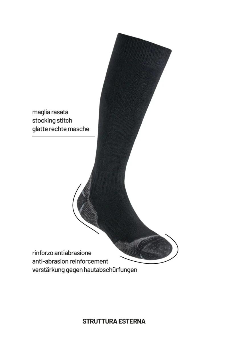 Per un utilizzo in alta quota, scalate su terreni tecnici e ghiaccio. Comfort termico e prestazione abbinate a protezione e morbidezza. Il filato in lana vergine merino extrafine e cashmere รจ un’esclusiva Calze GM e rende il prodotto unico.