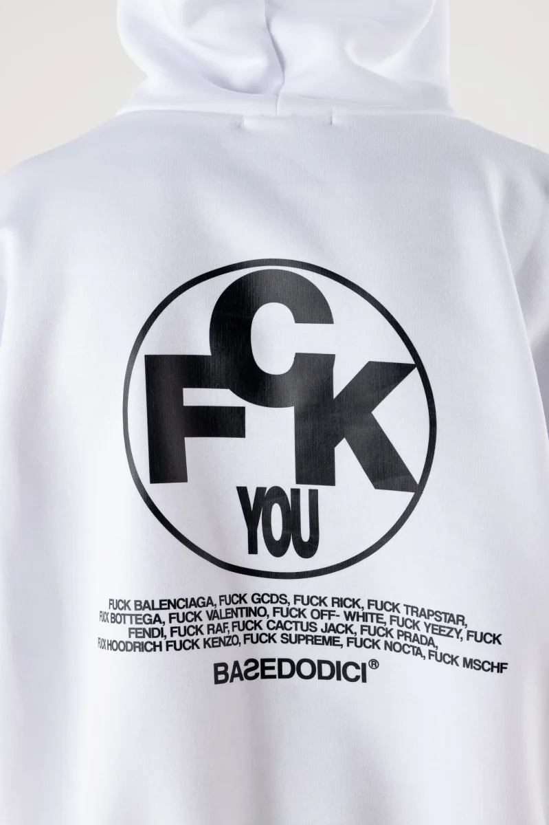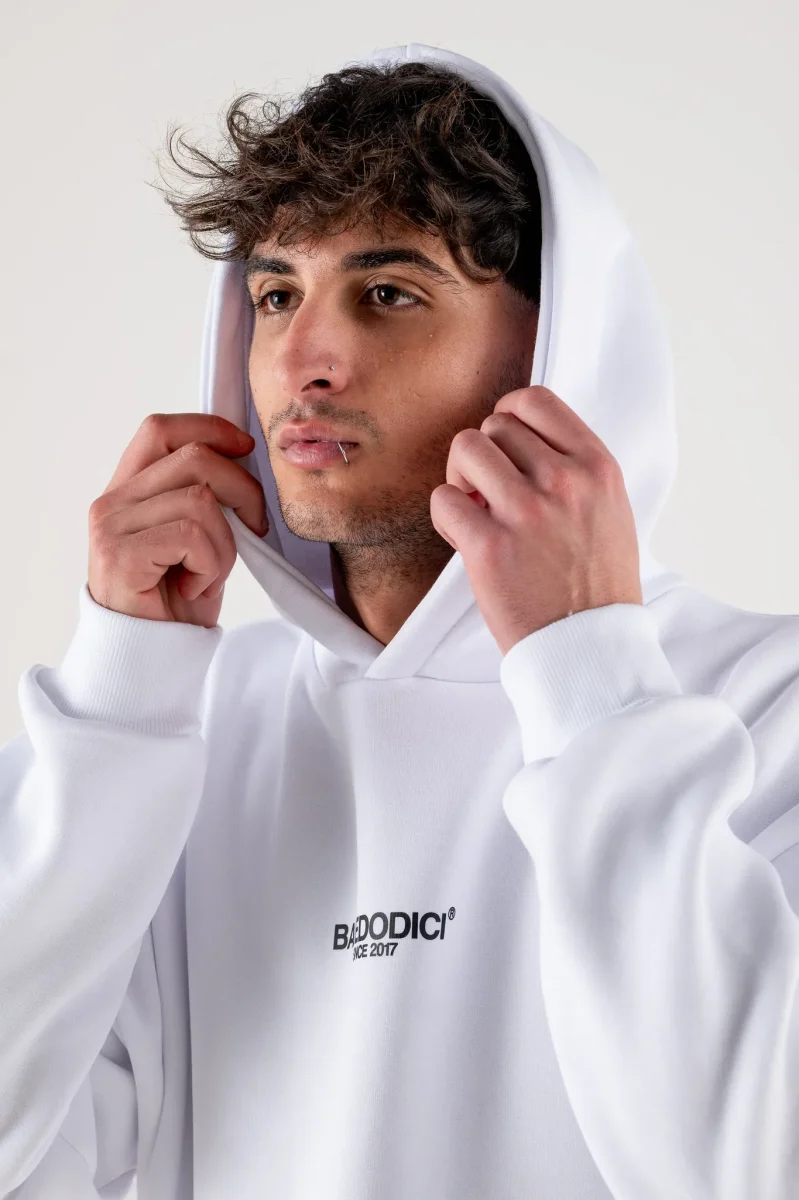 Felpa con cappuccio boxy fit, stampe DTF sul petto e nel retro caratterizzanti la collezione FW24 โRACING MADEโ by BASEDODICIยฎ๏ธ
