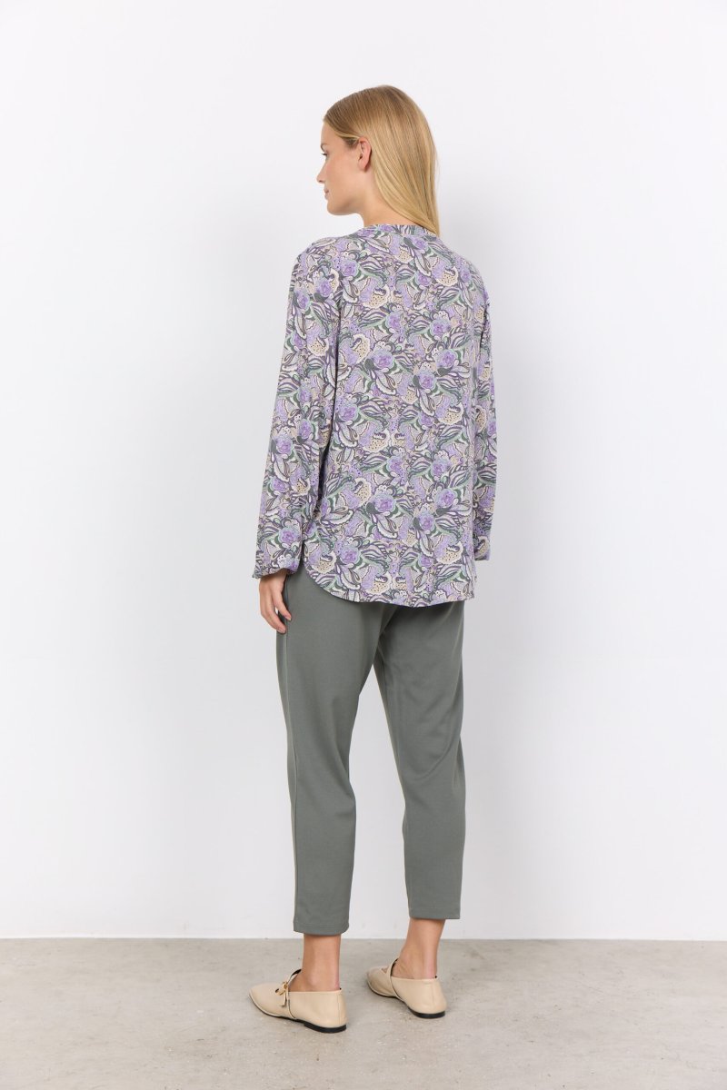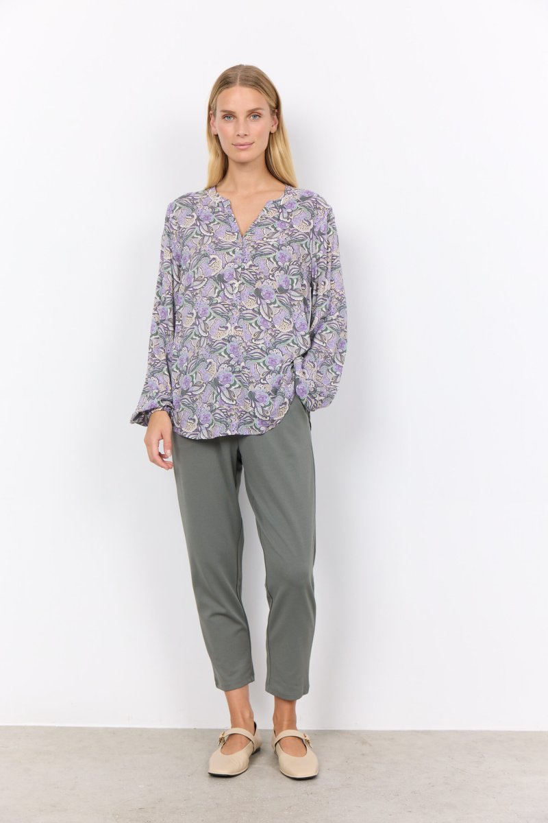 L’Adine 1 è più di una blusa: è un’affermazione di stile, comfort e impegno verso la moda sostenibile. Che tu stia cercando il capo perfetto per il lavoro, per un appuntamento serale o per un weekend casual, questa blusa con la sua stampa sul lilla è garantita per catturare l’attenzione e elevare il tuo stile.