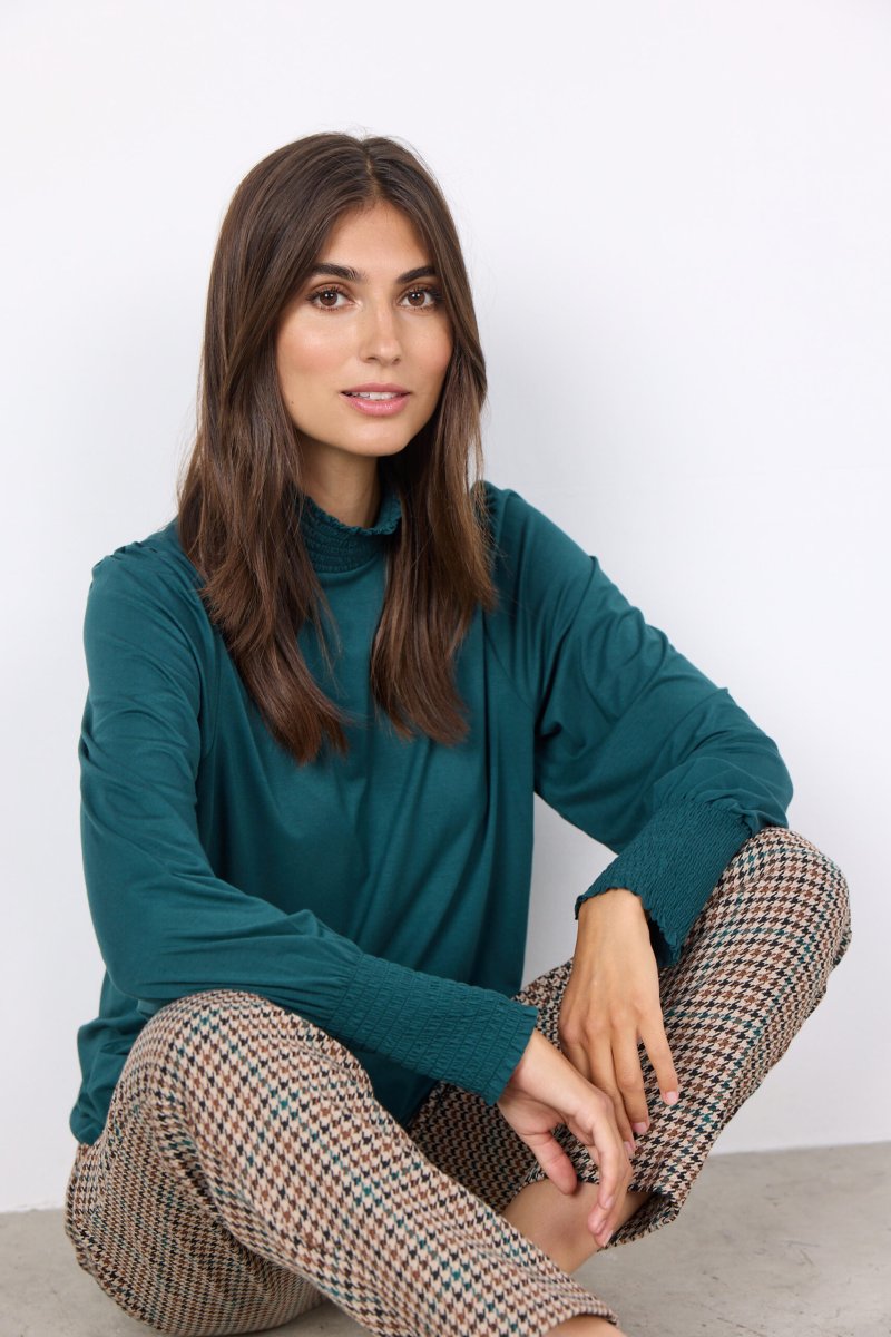 - Vestibilitร Versatile: La vestibilitร regolare assicura che questa blusa si adatti splendidamente a qualsiasi silhouette, mentre il suo colore petrolio aggiunge profonditร e classe al tuo look.