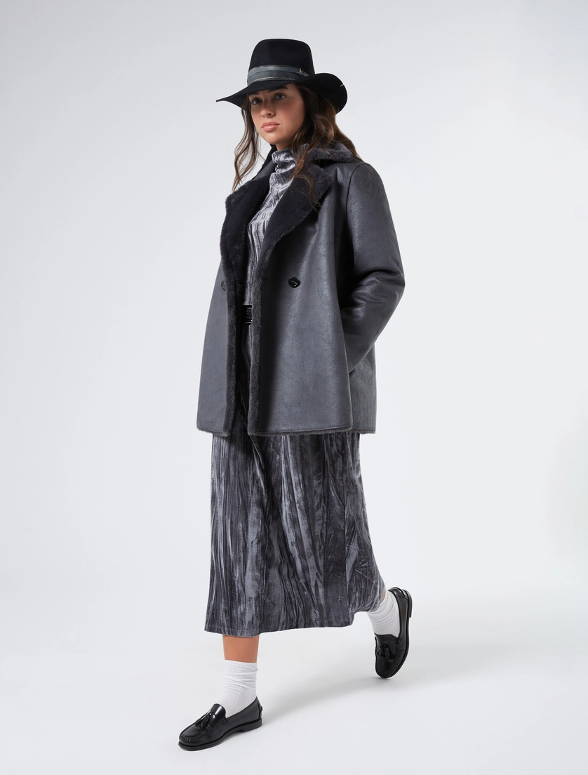 Doppio styling per il caban reversibile in tessuto morbido scamosciato da un lato e dalla texture soffice dall’altro. Stile anche alle temperature piรน rigide. Il capo fa parte della collezione Persona by Marina Rinaldi. – Tessuto morbido scamosciato e dalla texture soffice – Linea svasata – Collo con revers – Maniche lunghe – Chiusura con bottoni effetto corno – Tasche inserite – Polsi risvoltabili