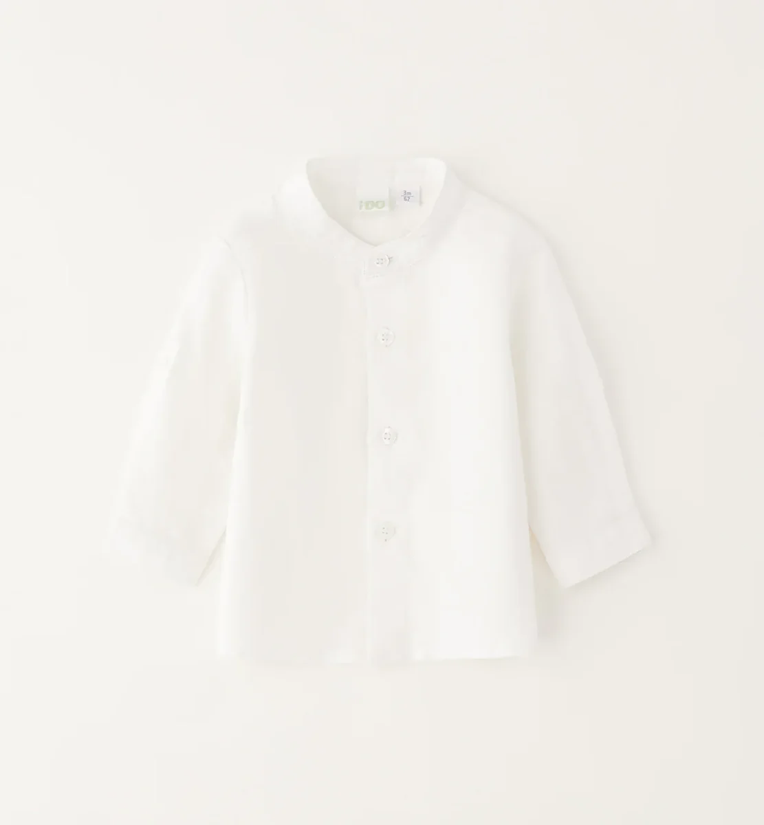 camicia bambino bianca con collo alla coreana โ camicina elegante in tessuto leggero e traspirante, pensata per garantire comfort e libertร di movimento fin dai primi mesi. modello con abbottonatura frontale e maniche lunghe con possibilitร di risvolto, perfetta per occasioni speciali ma anche per outfit quotidiani piรน curati. ideale da abbinare a pantaloni in cotone, salopette o completini eleganti, una scelta raffinata e senza tempo per il guardaroba del neonato.