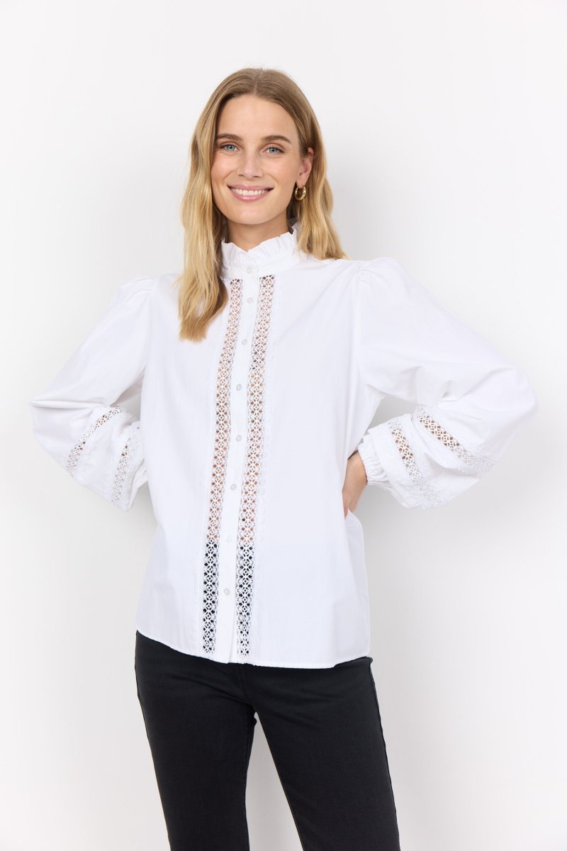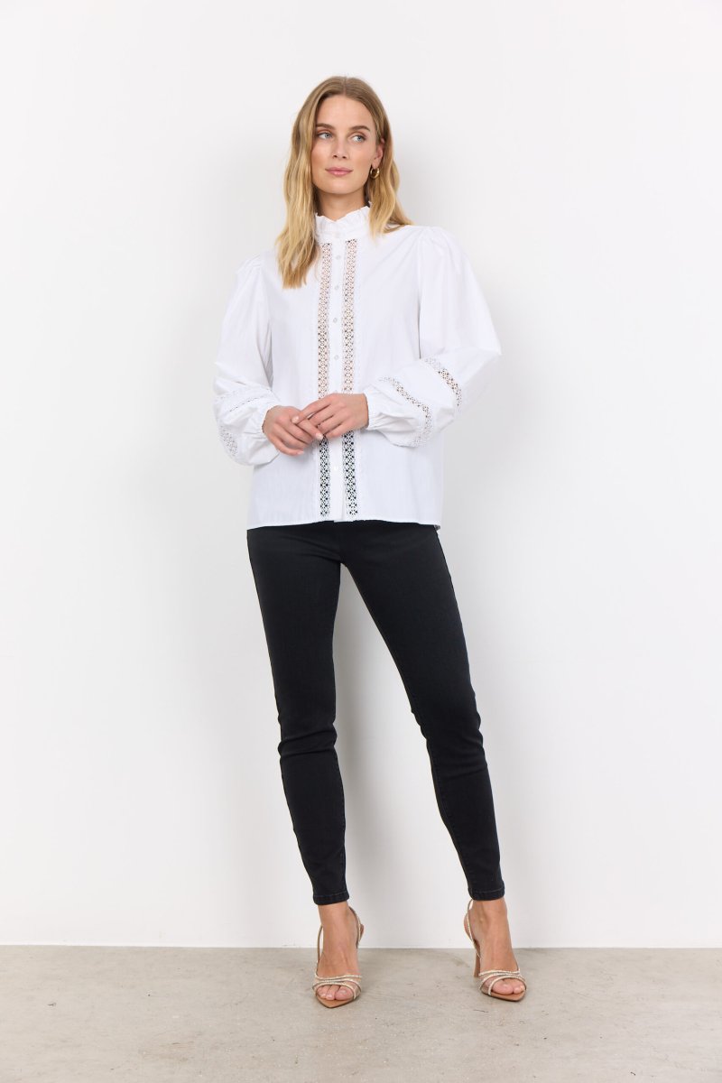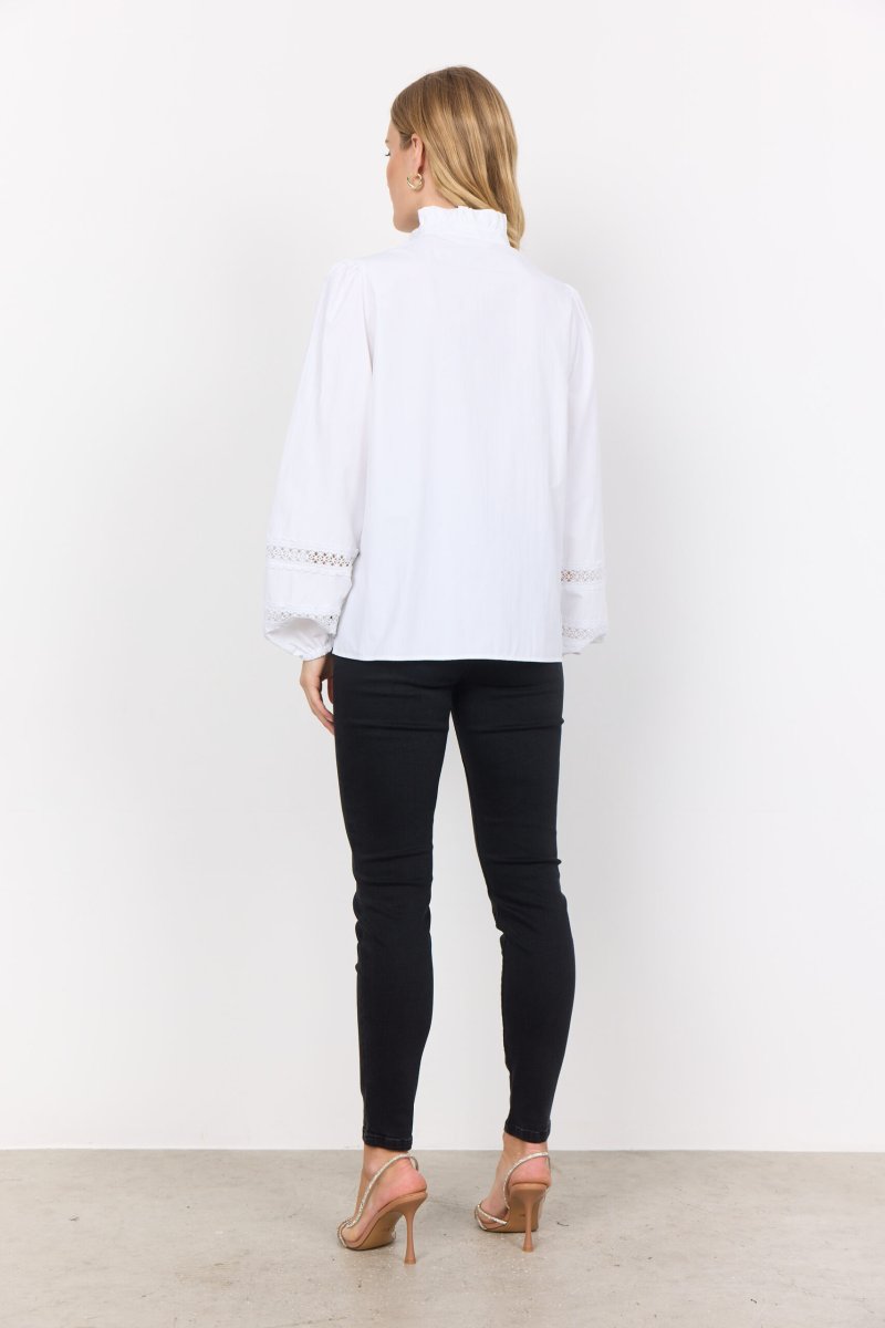 La SC-Netti 88 presenta un colletto alto, chiusura con bottoni, maniche lunghe e delicati ricami, che aggiungono un tocco di raffinatezza al design. Perfetta per un look casual e chic, abbinala a un paio di jeans e a un gilet lavorato a maglia per un outfit ideale da indossare ogni giorno.