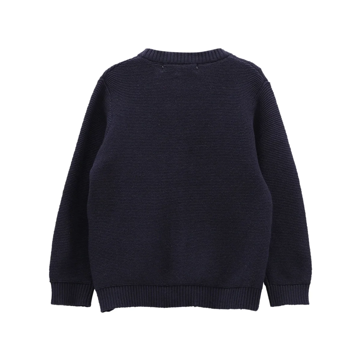 cardigan bambino blu navy in maglia con bottoni โ cardigan in morbida maglia lavorata tinta unita con chiusura frontale a bottoni e scollo a v, caratterizzato da polsini e fondo a costine che garantiscono una vestibilitร confortevole e ordinata. modello versatile e raffinato, ideale da indossare sopra camicie o t-shirt per completare look casual o piรน eleganti, perfetto da abbinare a jeans o pantaloni chino per outfit curati in ogni occasione.
