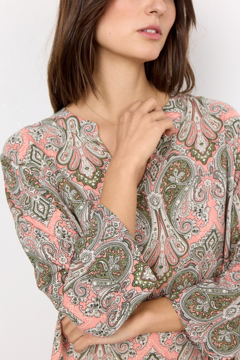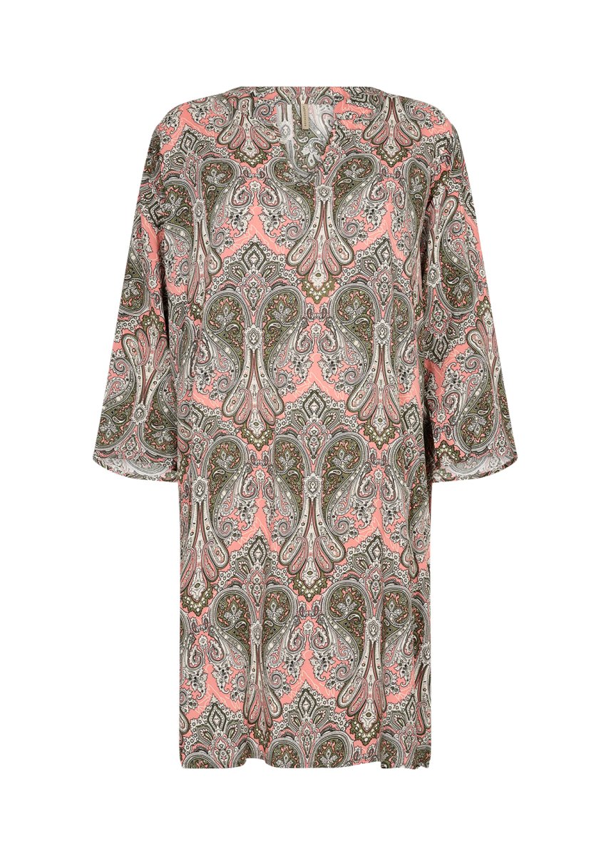 ABITO A TUBINO IN SPUGNA GODDIVA IN COLOR CORALLO E TURCHESE