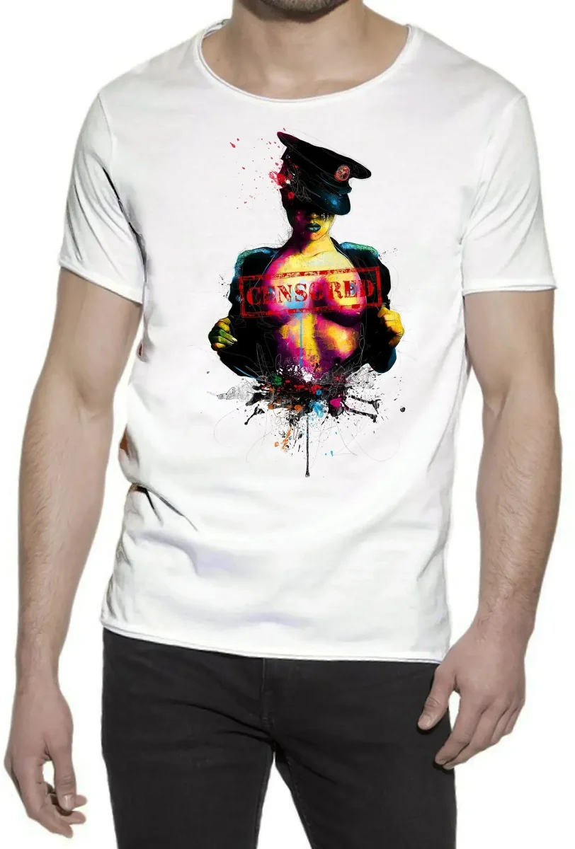 Censored Color Artistico Stilizzato 18-20-44 T-shirt Urban Slub Men Uomo 100% Cotone Fiammato JK