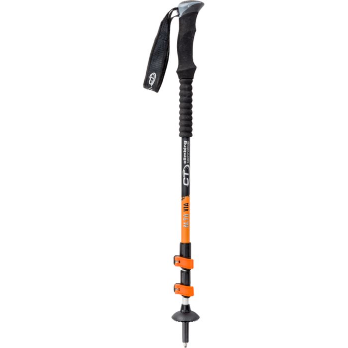 Climbing Technology Bastoncino da Trekking Alta Via Bastoncino da escursionismo e trekking, leggero e compatto. Caratteristiche principali: tre sezioni in Alluminio Alu7075 con sistema Easy-Lock di chiusura e regolazione (Ø 16-14-12 mm); manopola ergonomica in Eva-grip con lacciolo di facile regolazione; puntale in acciaio al Widia, fornito con rotelle trekking e neve.