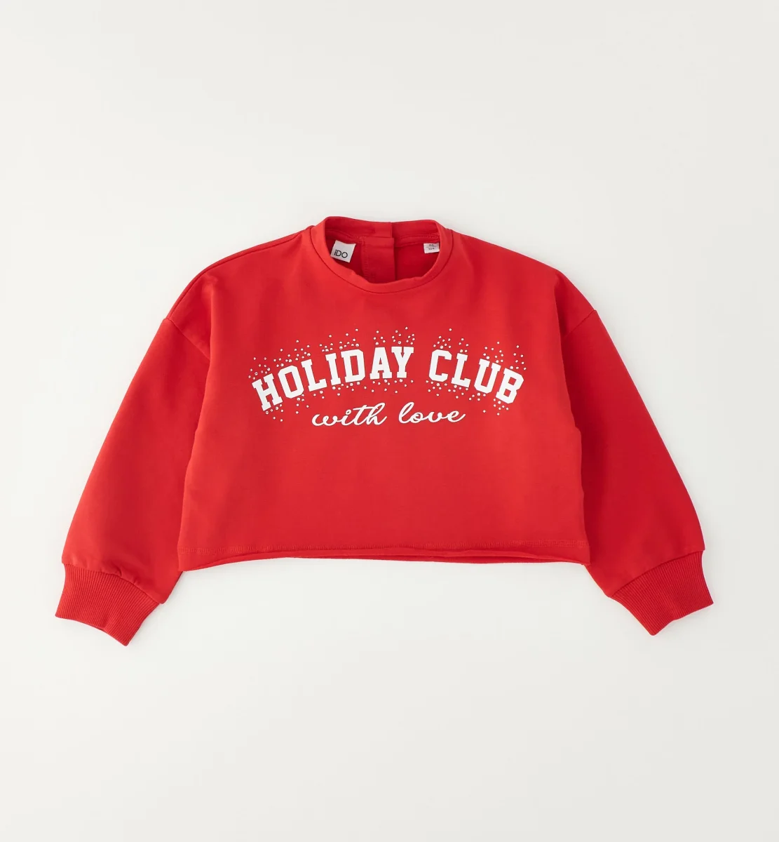 completo 3 pezzi bambina rosso con felpa crop e shorts โ€“ set coordinato dallo stile vivace e moderno composto da felpa corta con stampa lettering โ€œholiday club with loveโ€, t-shirt bianca con grafica cagnolino e scritta frontale e shorts rossi con vita elasticizzata. realizzato in morbido cotone, offre comfort e libertร  di movimento per il tempo libero e le giornate estive. perfetto da indossare insieme per un look grintoso e coordinato oppure da abbinare separatamente ad altri capi casual della stagione.