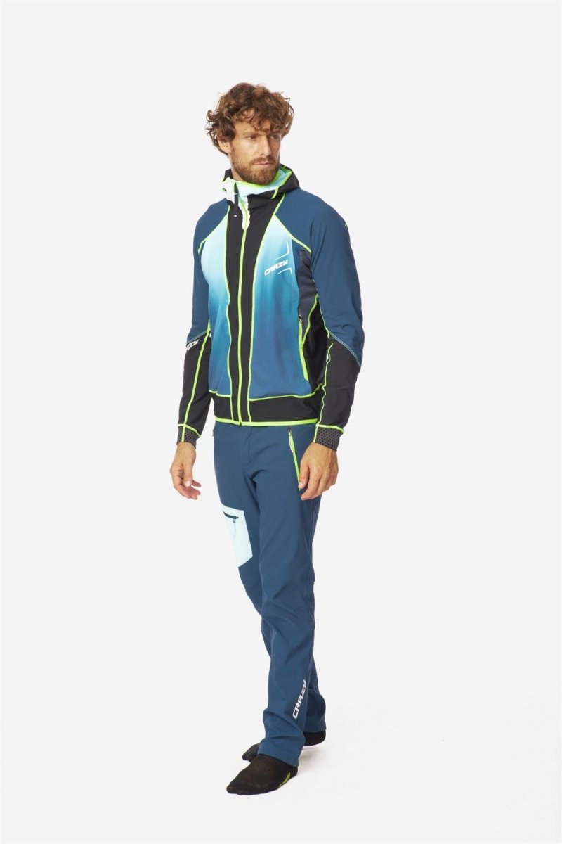 Giacca ibrida con cappuccio, per lโattivitร outdoor a media / alta intensitร . Perfetta per lo sci alpinismo nelle giornate ventose, quando uno strato imbottito sarebbe eccessivo. Questa giacca รจ realizzata in tessuto soft shell senza membrana, traspirante con trattamento DWR e proprietร antivento. Apertura frontale con zip, cappuccio preformato, tasche con chiusura zip, tessuto laterale piรน traspirante e leggero, fondo elastico ne delineano lโaspetto.