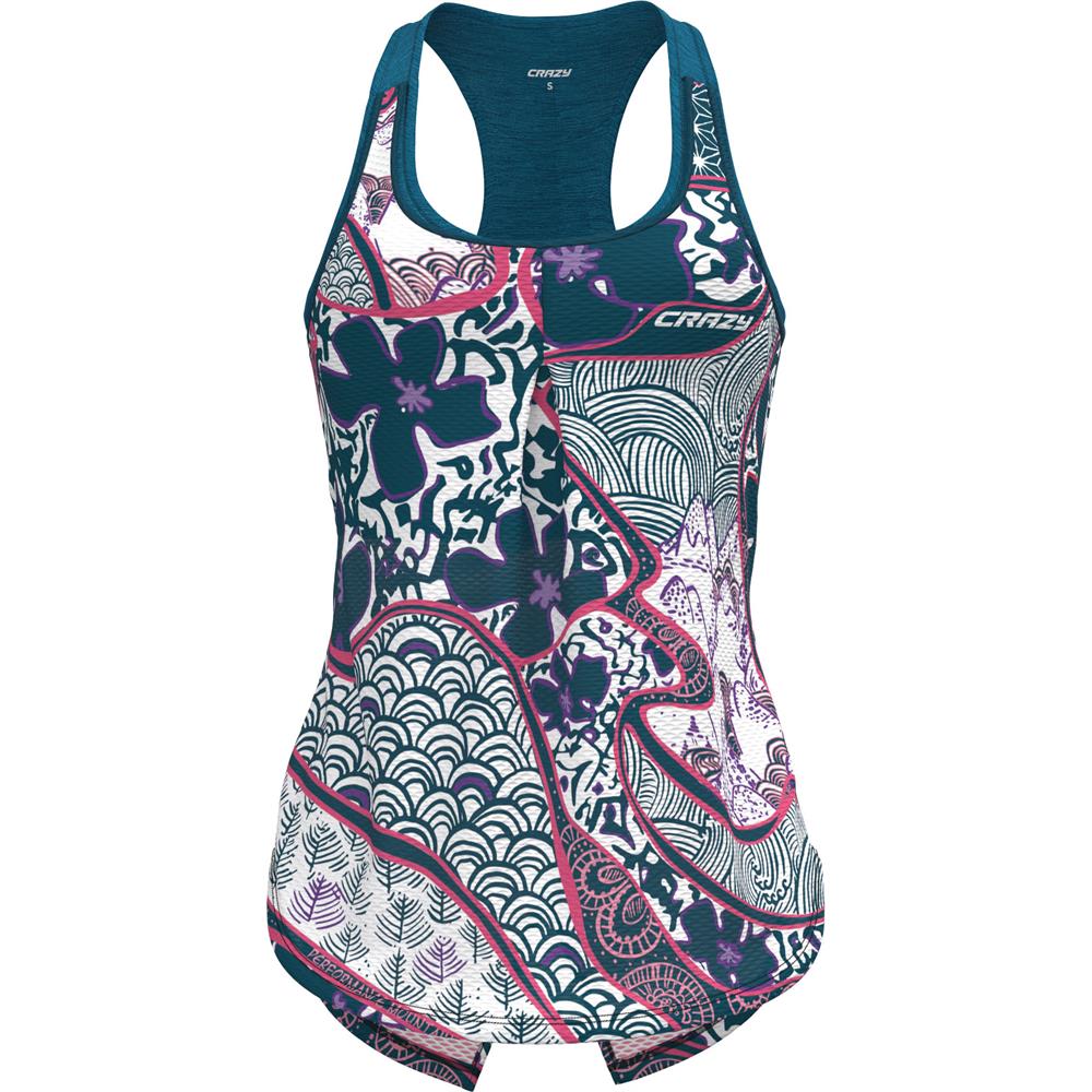 Se siete stufi dei soliti colori ecco la canotta creata con doppio strato di tessuto sovrapposto studiata per l’attivitร all’aria aperta e il trekking, stampata, colorata e allegra. Tessuto interno in microfibra melange rapid-dry, Mesh esterno in rete traspirante con trattamento a rapida asciugatura G2. Spalline morbide, bra interno amovibile, ottima vestibilitร .
