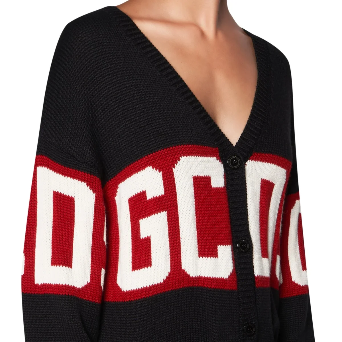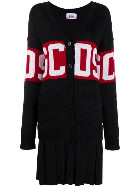 GCDS Woman Logo Sweater Cardigan Dress Black