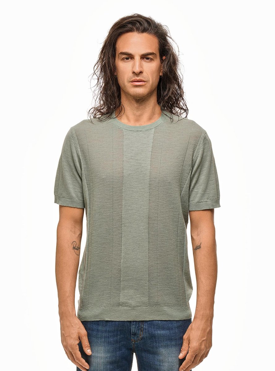 Questa maglia si distingue per la texture rigata con lavorazione a chicco di riso e una leggera tridimensionalitร . Perfetta per completare con stile i tuoi look estivi e da ufficio.
