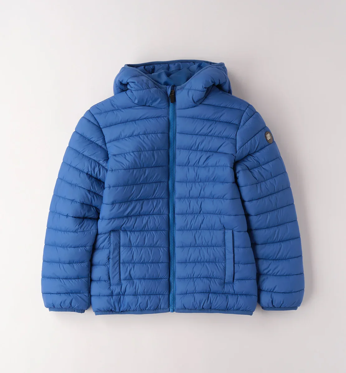 giubbotto imbottito bambino e ragazzo con cappuccio bluette e nero โ piumino leggero trapuntato dal design sportivo, disponibile in due varianti colore bluette e nero. modello con cappuccio fisso, chiusura frontale con zip, tasche laterali e patch logo sulla manica. imbottitura calda ma leggera ideale per la mezza stagione e per lโinverno non troppo rigido, con vestibilitร comoda pensata per accompagnare i movimenti quotidiani. perfetto da abbinare a felpe, jeans o pantaloni sportivi per look pratici e versatili da scuola e tempo libero.