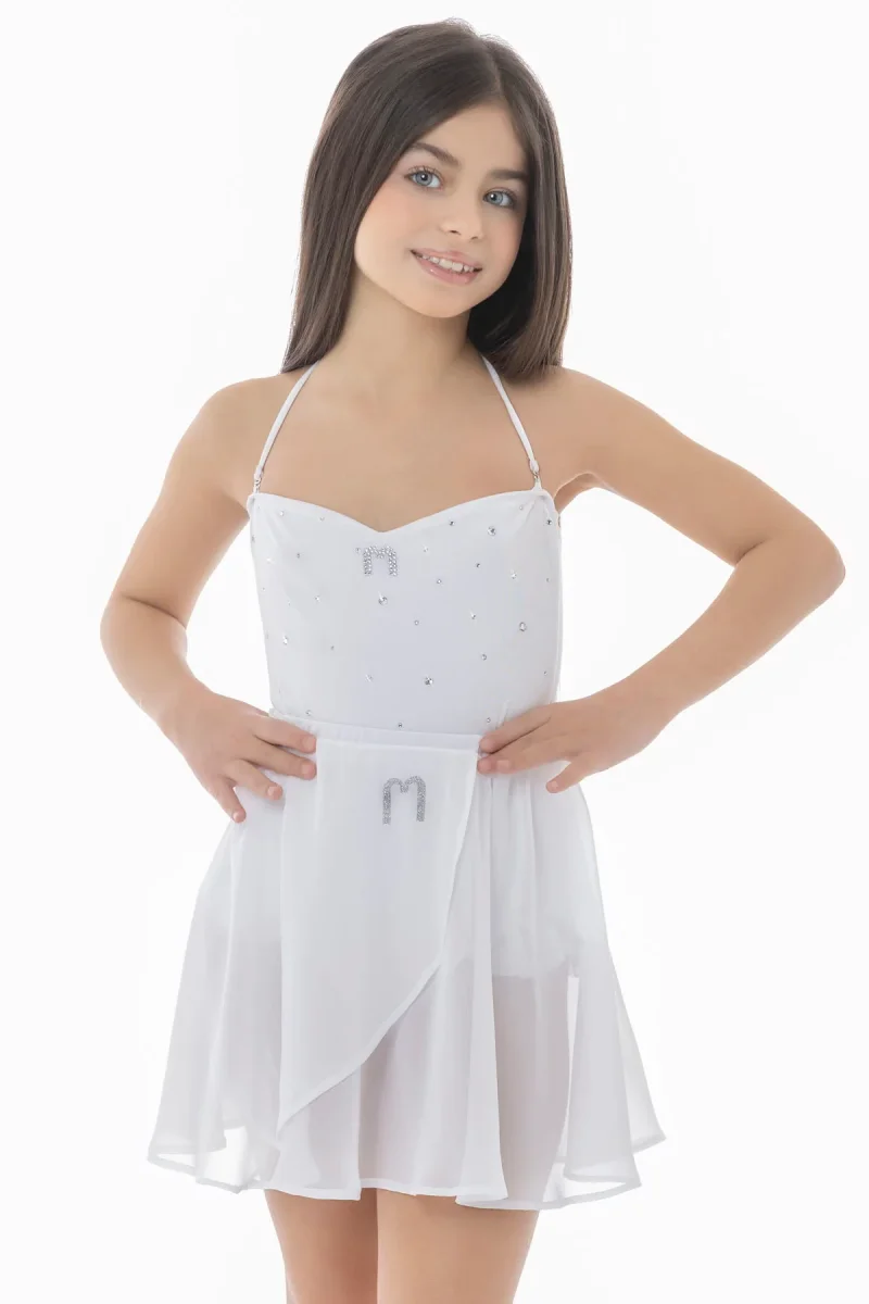 Elegante gonnellino in morbida georgette con logo glitterato frontale