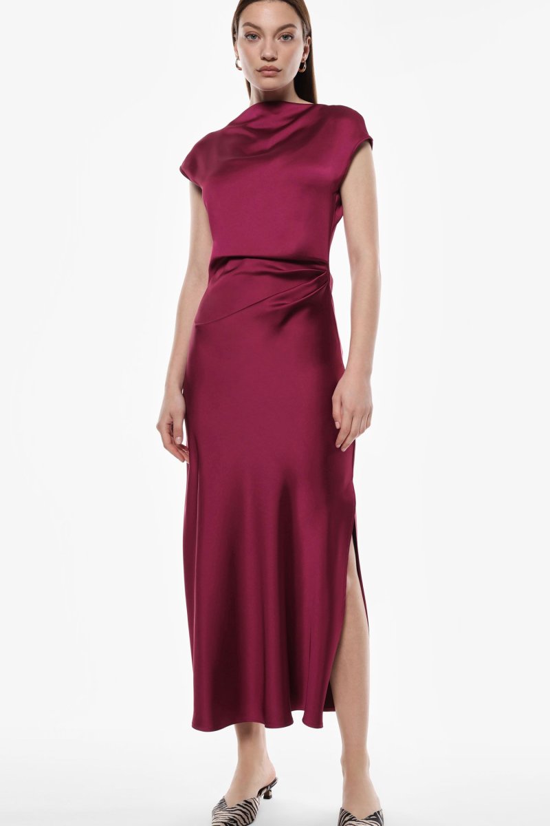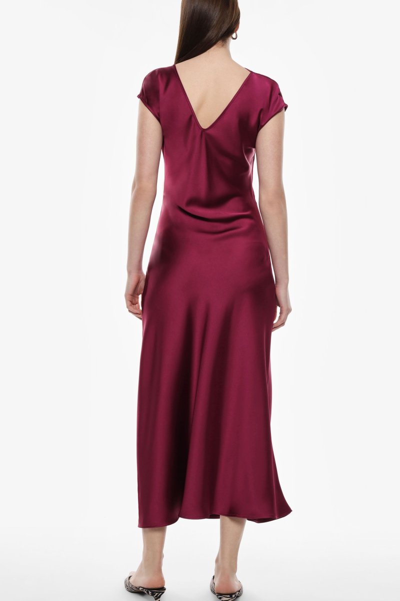 Raffinato abito lungo con uno scollo a barca che incornicia elegantemente il collo. Le maniche corte e il taglio senza chiusura accentuano la sua silhouette fluida. Un capo che si adatta perfettamente a serate speciali, offrendo un tocco di sofisticata semplicitร e una vestibilitร armoniosa che invita all’eleganza.