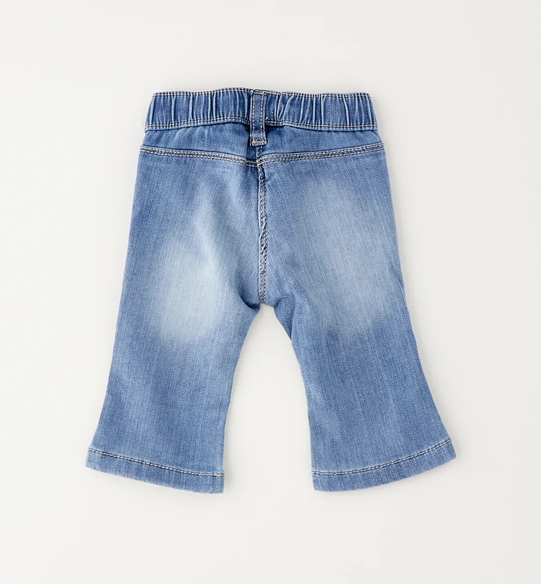jeans bambina blu chiaro con strass sulle tasche โ pantalone in denim elasticizzato dal lavaggio chiaro con elastico in vita e passanti, progettato per offrire comfort e vestibilitร pratica durante tutta la giornata. modello con tasche applicate sul retro impreziosite da piccoli strass a motivo floreale che aggiungono un tocco luminoso e delicato, gamba dritta con lunghezza cropped perfetta per la stagione. ideale da abbinare a t-shirt stampate o felpe leggere per creare outfit casual ma curati.