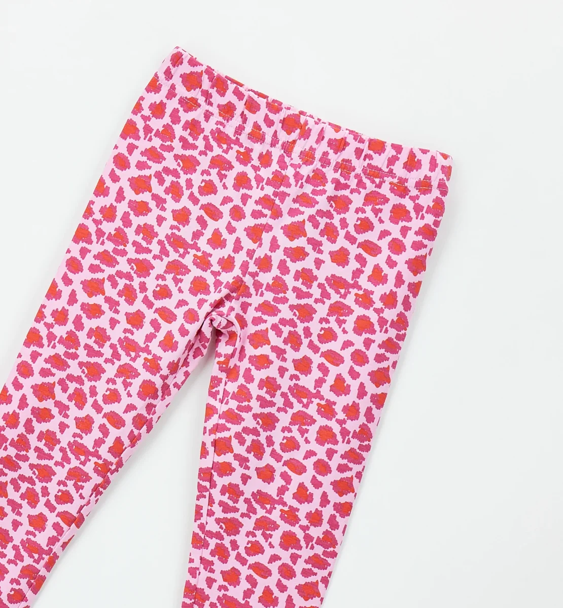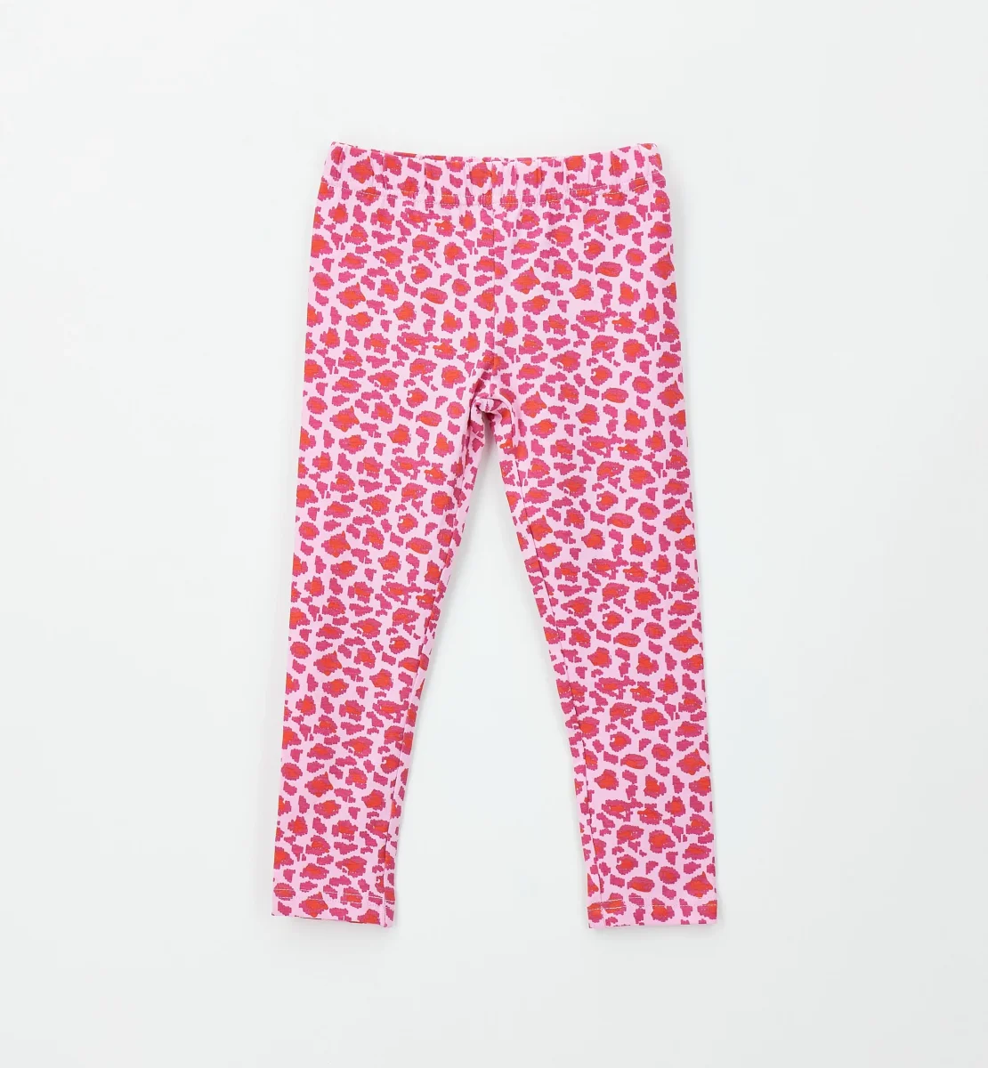 leggings bambina rosa stampa leopardata allover โ leggings in cotone elasticizzato con stampa leopardata allover nei toni del rosa e corallo, dal look vivace e grintoso. modello aderente con elastico in vita che garantisce comfort e libertร di movimento, perfetti da abbinare a t-shirt o felpe per outfit quotidiani pratici ma super stilosi.