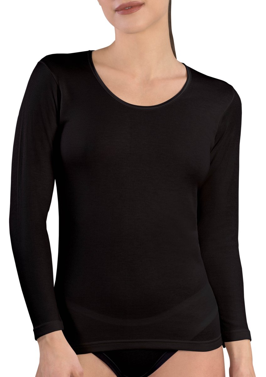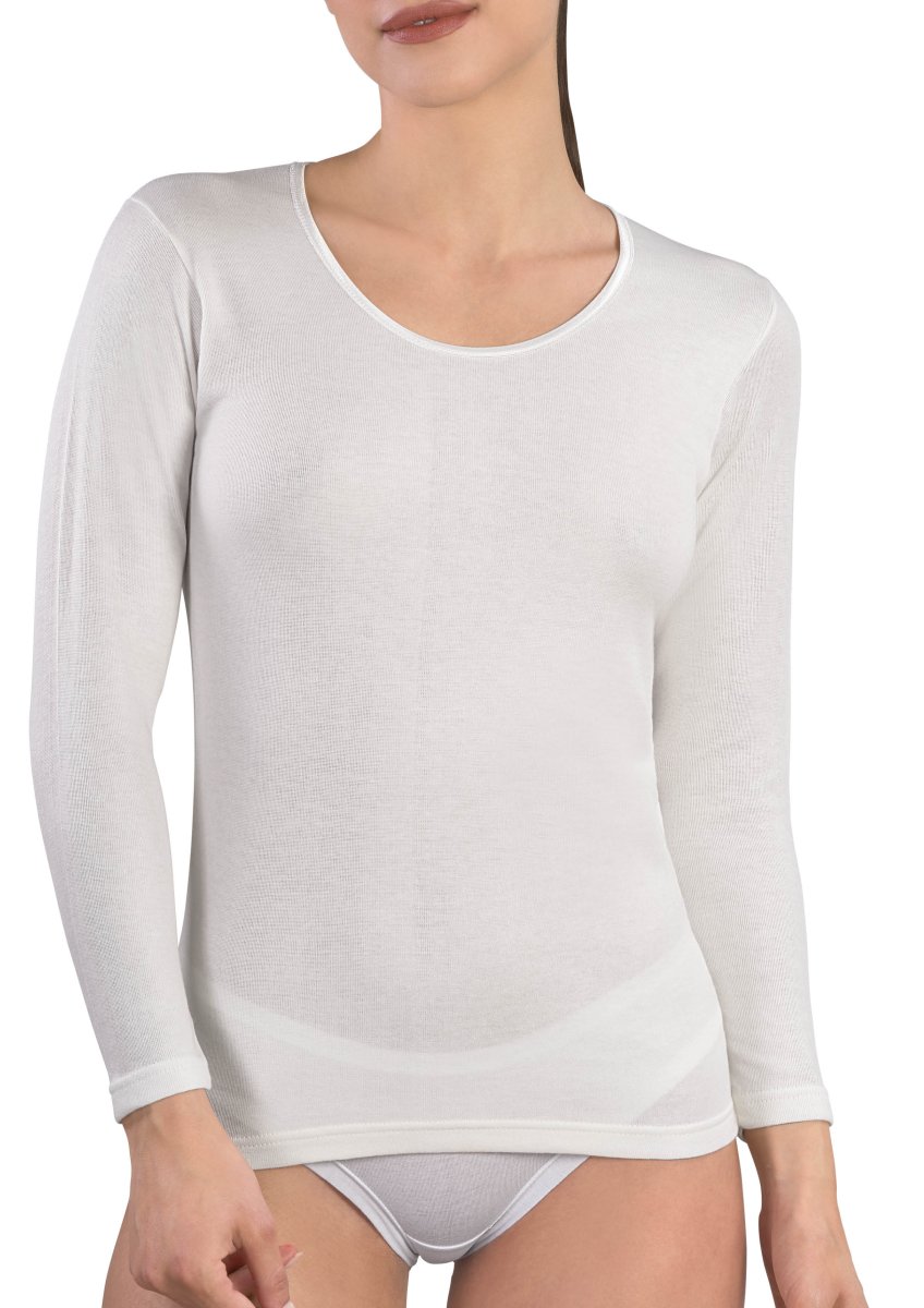 MAGLIA MANICA LUNGA DONNA GIROCOLLO BORDO RASO LANA E COTONE