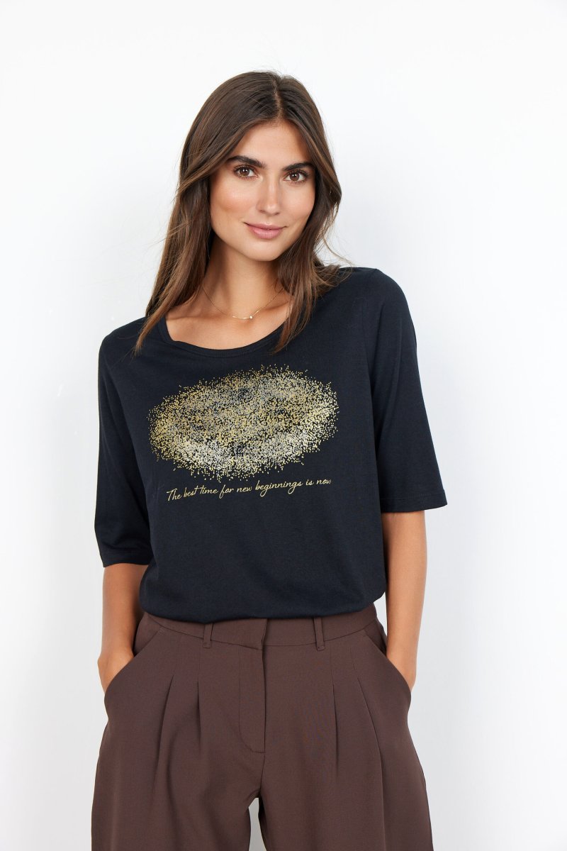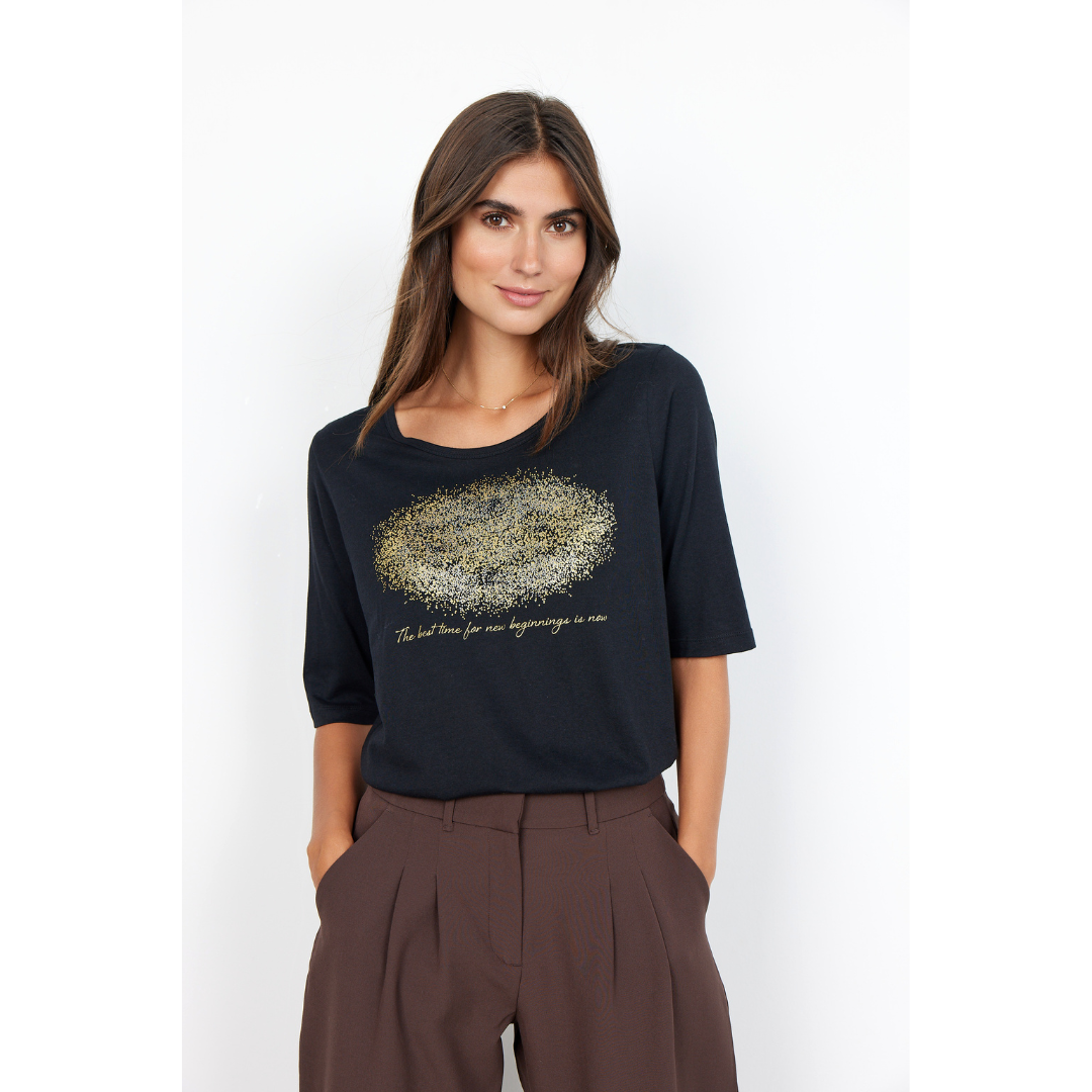 SC-felicity 395 รจ una fantastica t-shirt in cotone biologico e qualitร viscosa. La t-shirt ha un profondo scollo tondo, una vestibilitร ampia e una bella stampa grafica sul davanti. Abbina questa maglietta con un paio dei tuoi jeans preferiti e un blazer per un bel look quotidiano.