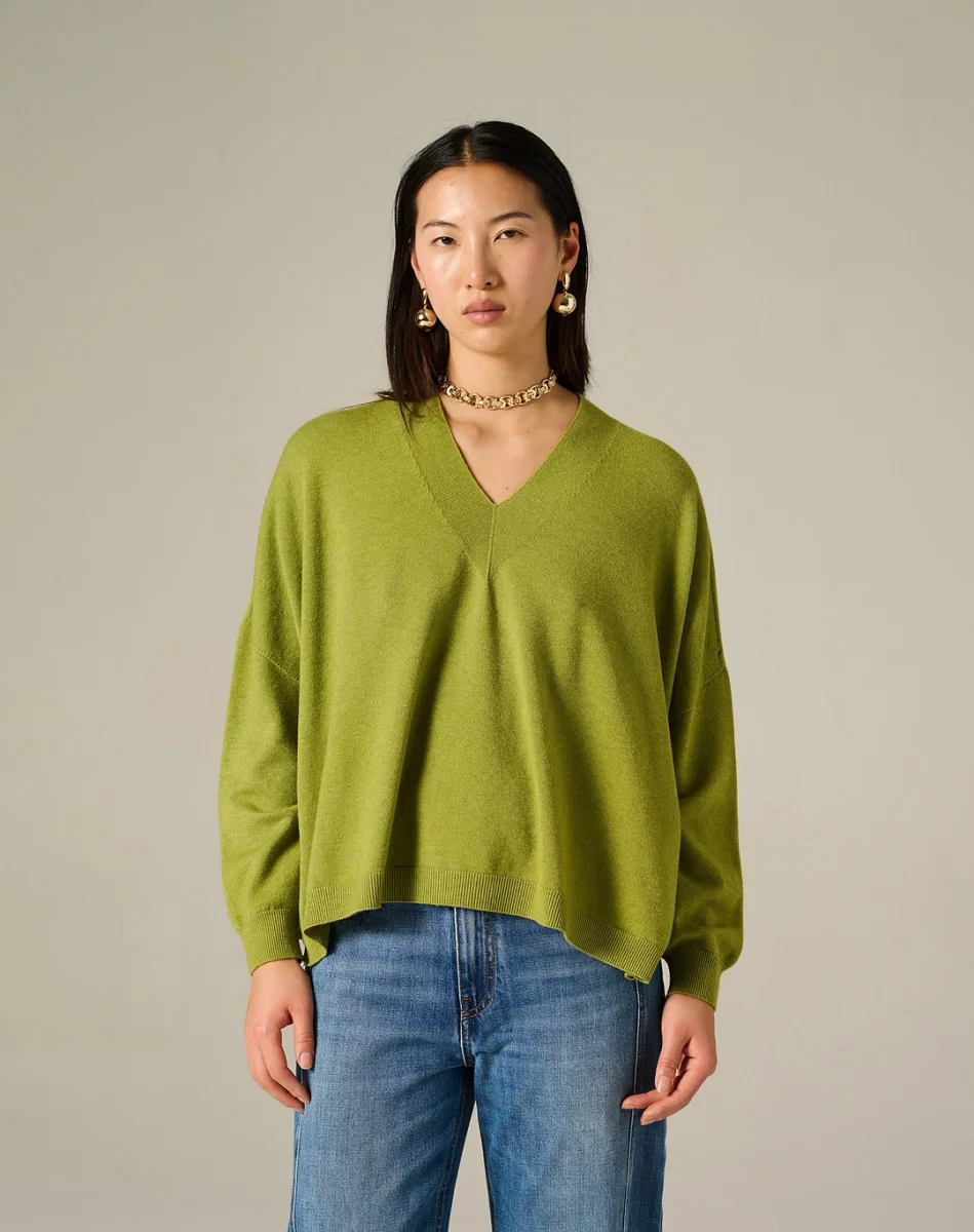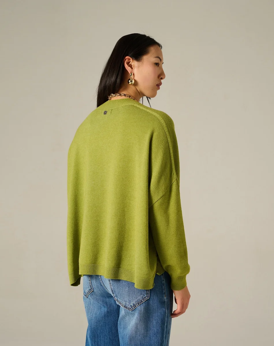 Maglia basic scollo a VQuesto capo a scollo V con maniche lunghe dalla vestibilitร  morbida รจ realizzato in calda viscosa elasticizzata tinto capo. Lavorato in maglia rasata con spacchi laterali, fondi e polsi rifiniti a costine