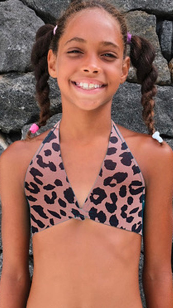 Bikini Ossidiana. Il nostro primo modello. Un bikini classico con coppa a vela realizzato in una fibra composta da 90% cotone organico certificato GOTS, 10% elastane. Realizzato a taglio vivo, annodato a mano senza cuciture. La versione Kid รจ disponibile in tre taglie: S-M-L in tinta unita e stampa. Considerando la diverse fisicitร , le taglie corrispondono orientativamente a: S-3/5 anni; M 5/7 anni; L 7/9 anni.
