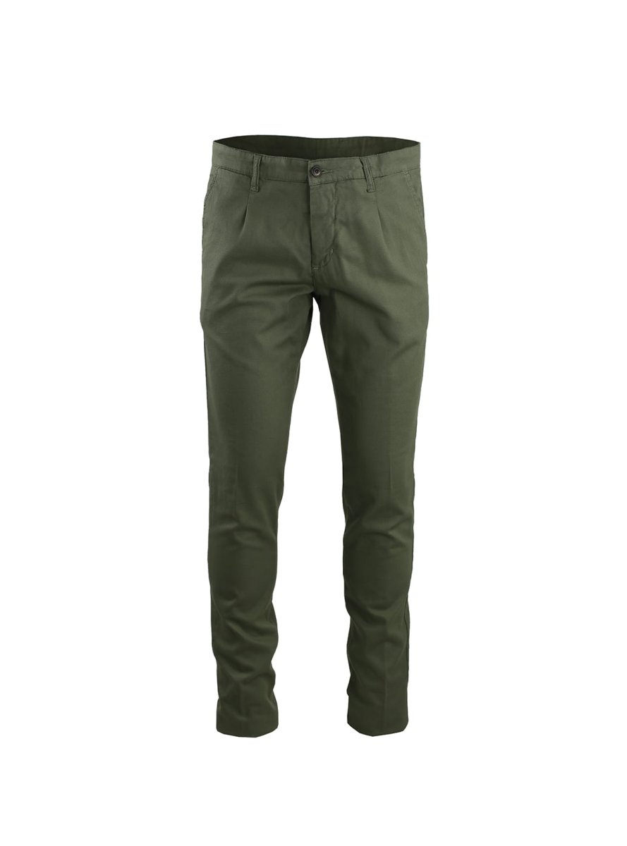 Il gusto casual della gabardina operata leggermente confort si sposa bene con il pantalone con una piccola pince sulla vita, che gli conferisce un poโ di morbidezza. ร un pantalone passe-partout, quindi, puรฒ essere usato in piรน situazioni dalle piรน formali alle piรน casual.