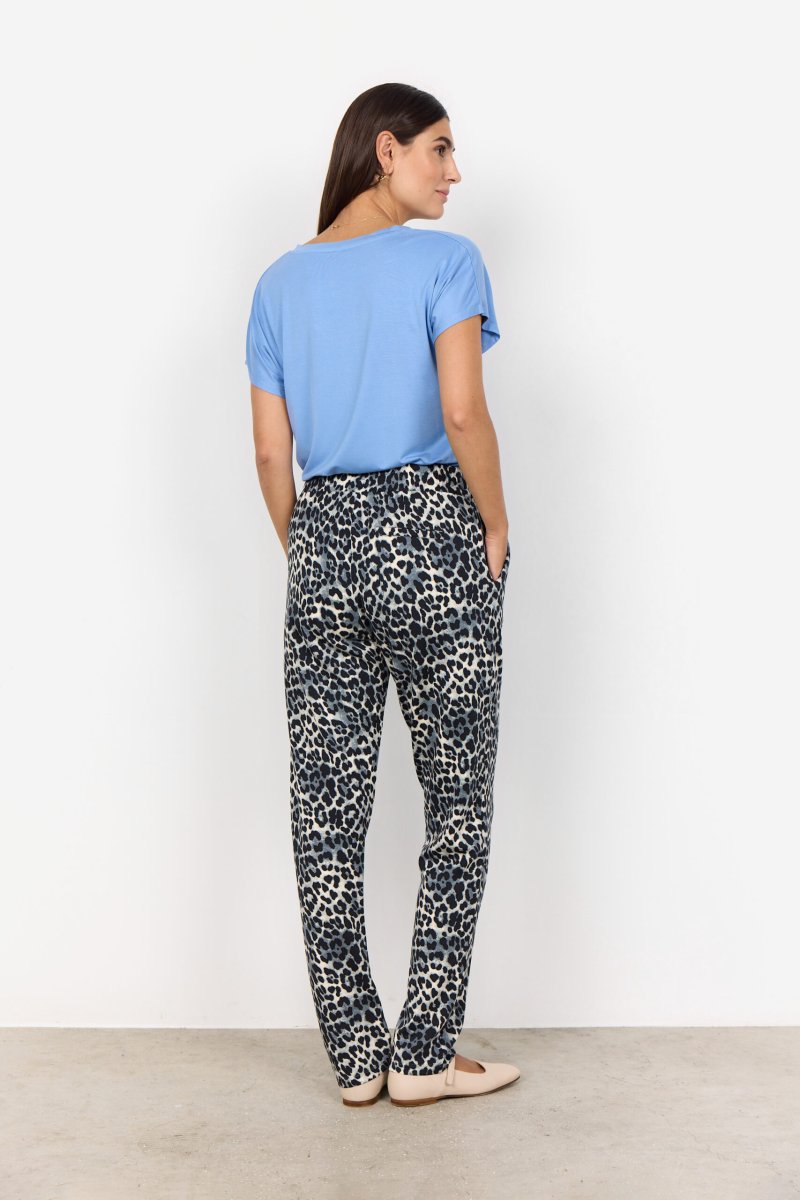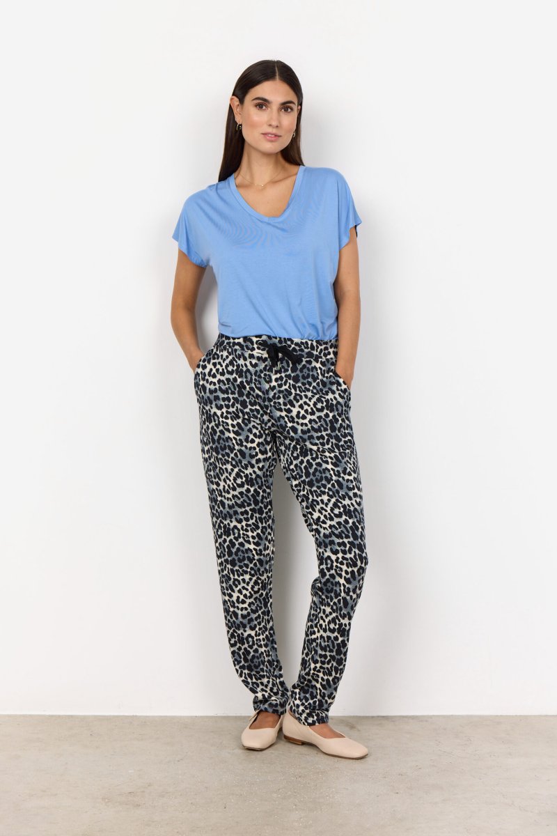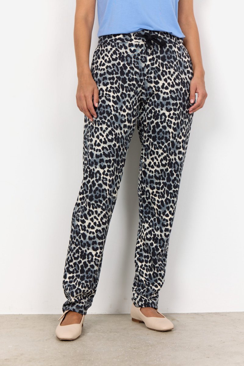 Parole chiave SEO: pantaloni animalier donna, pantaloni con coulisse, pantaloni modal elasticizzati, pantaloni comodi moda donna, pantaloni tg comode, outfit casual chic, moda donna primavera estate, pantaloni fantasia.