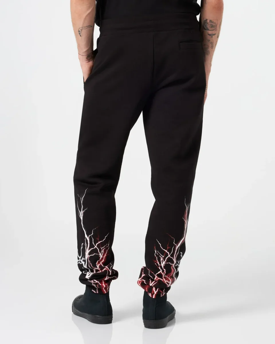 Pantaloni neri con grafica Lightning in stampa serigrafica rossa e grigia e logo ricamato. Dettagli:– Pantaloni neri– Grafica Lightning in stampa serigrafica– Logo ricamato Disegnato in Italia Materiali: 100% cotone | 450 g