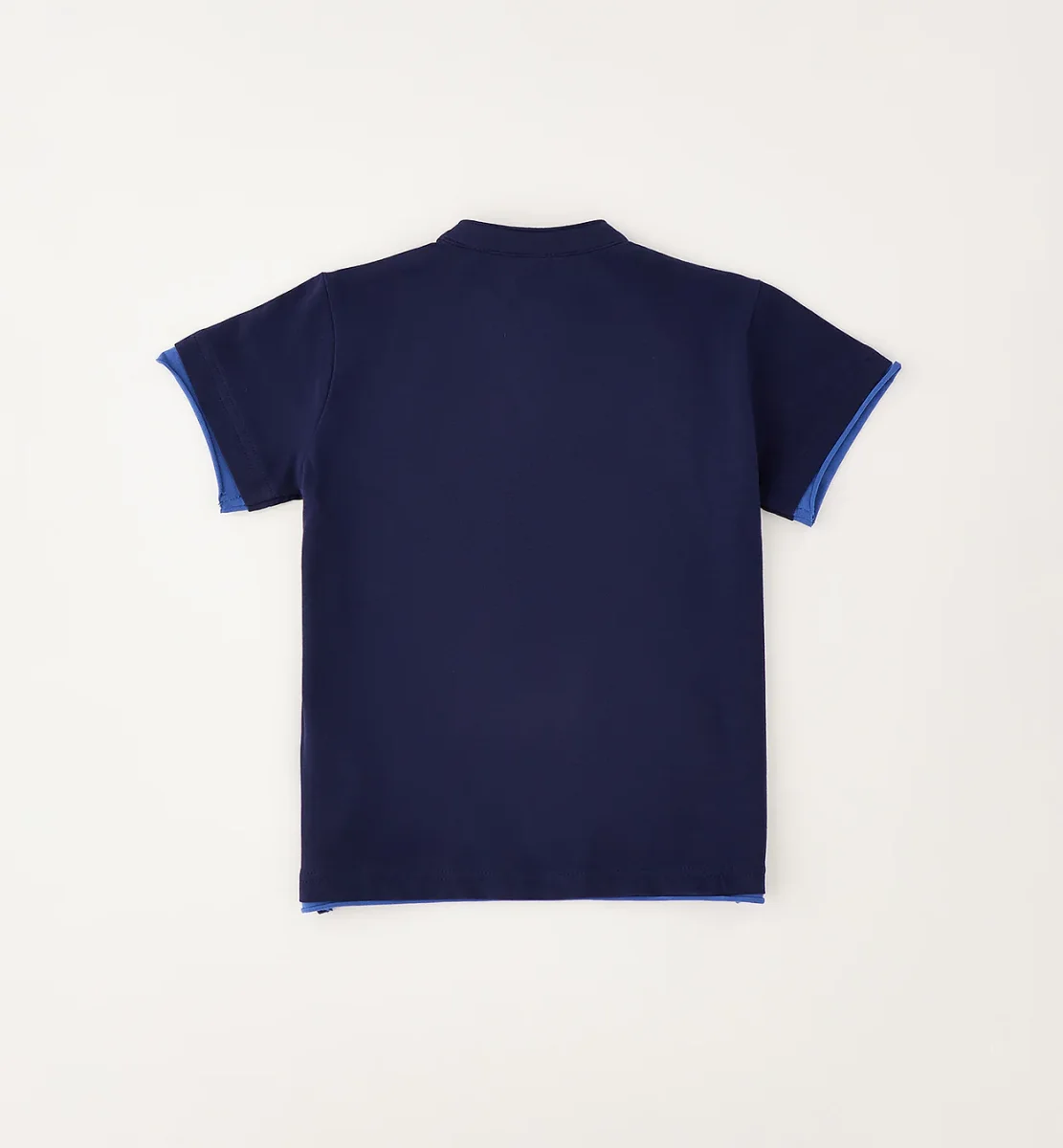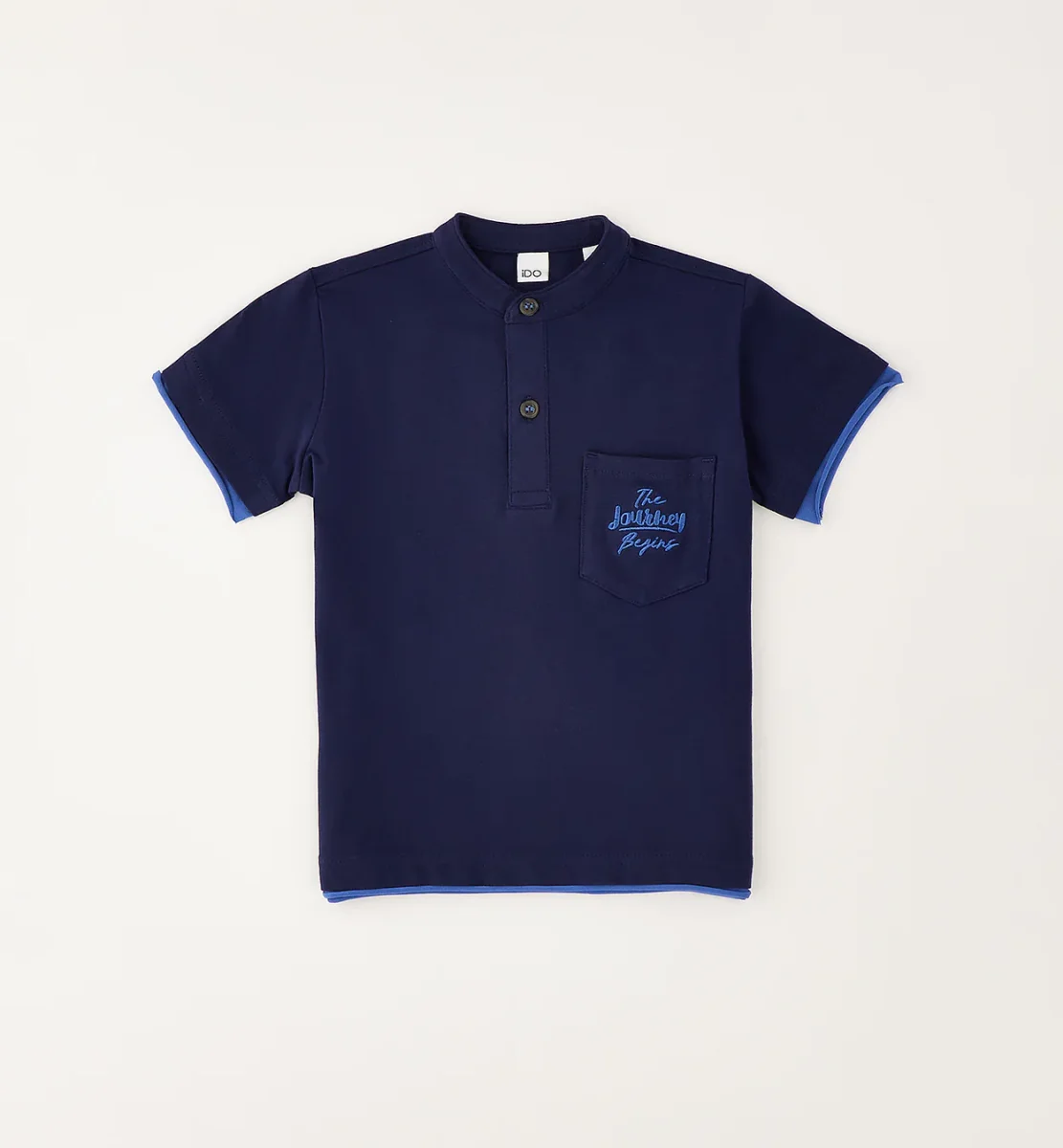 polo t-shirt bambino blu navy con taschino ricamato โ maglietta a manica corta in morbido cotone blu navy con colletto serafino e bottoncini frontali per un look curato ma informale. modello impreziosito da taschino applicato con ricamo lettering a contrasto e dettagli interni azzurri sulle maniche. vestibilitร comoda, perfetta da abbinare a bermuda o pantaloni chino per outfit estivi eleganti ma pratici.