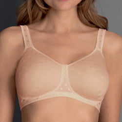 Il reggiseno Airita comfort esprime un look sobrio e minimalista e assicura un benessere unico nel suo genere. Il segreto: una coppa coprente e traspirante che accentua il clima-comfort di Airita grazie al materiale permeabile. Le bordure sono estremamente piatte e avvolgono perfettamente la scollatura. Senza ferretto e prive di cuciture, le coppe offrono un comodo sostegno fino alla coppa F.