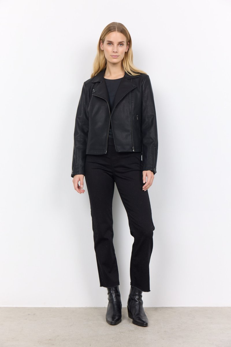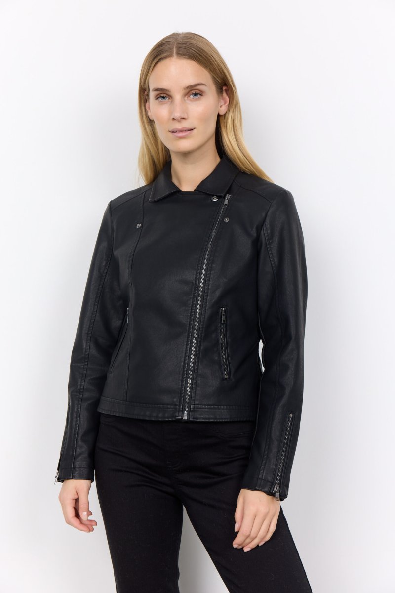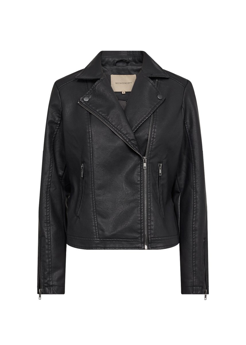 SC-Gunilla 7 – Giacca corta in ecopelle nera con zip e colletto revers