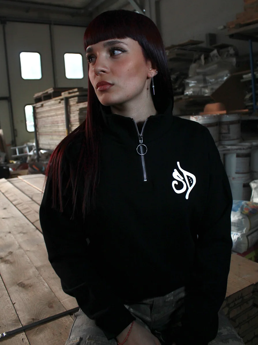 Felpa Cropped Fit, zip ยผ, Internamente felpata Stampa “SD” spessorata lato cuore Made in Italy