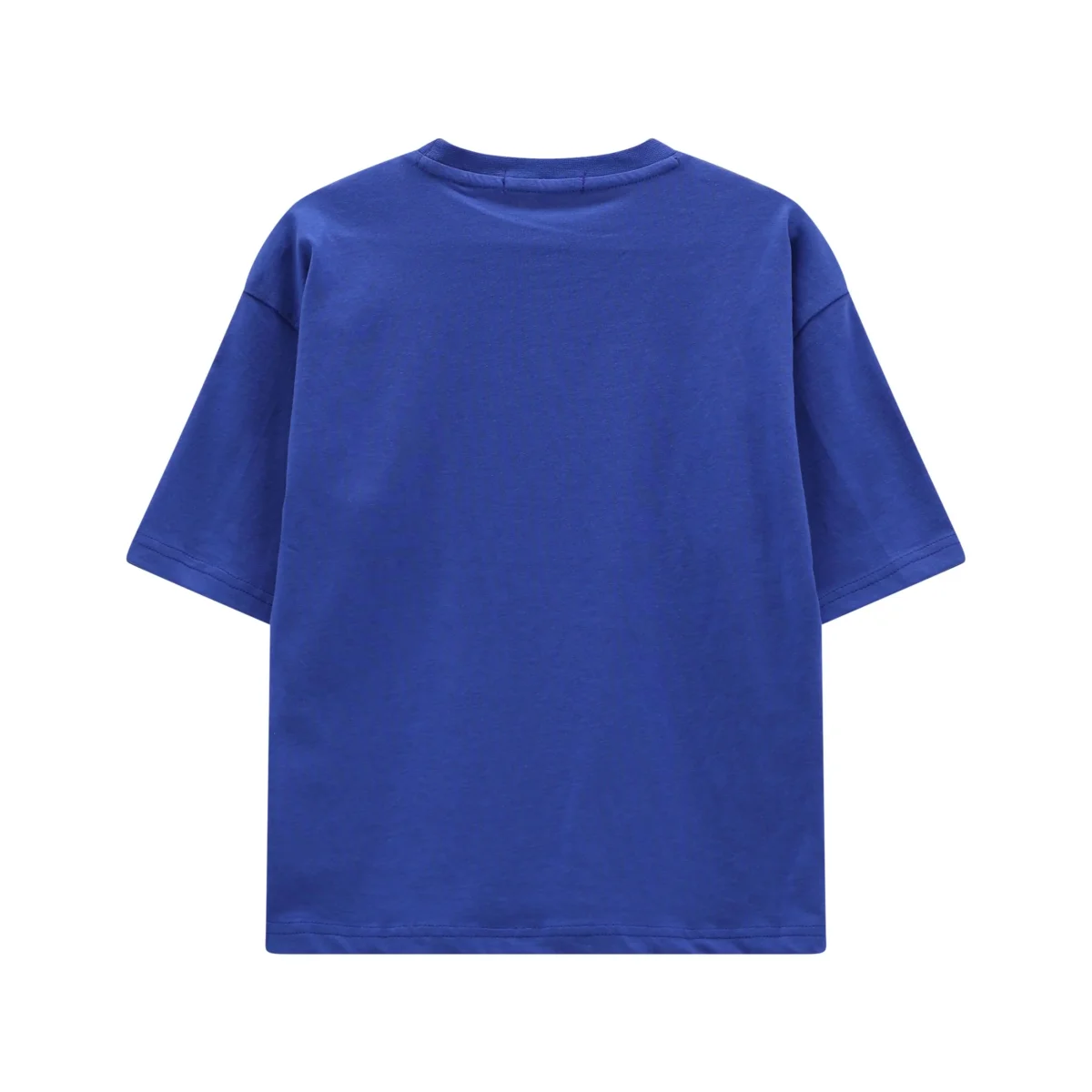 t-shirt manica corta bambino e ragazzo blu elettrico con stampa urban โ maglietta in morbido cotone dal carattere deciso e contemporaneo, pensata per bambini e ragazzi che amano uno stile street moderno. il modello presenta una maxi stampa grafica a contrasto sul davanti con effetto pennellata e dettagli testuali che donano personalitร al capo, mentre il retro รจ tinta unita per un look piรน pulito. vestibilitร comoda e girocollo classico assicurano comfort durante tutta la giornata. perfetta da abbinare a bermuda, jogger o jeans per creare outfit casual e di tendenza, ideali per scuola e tempo libero.